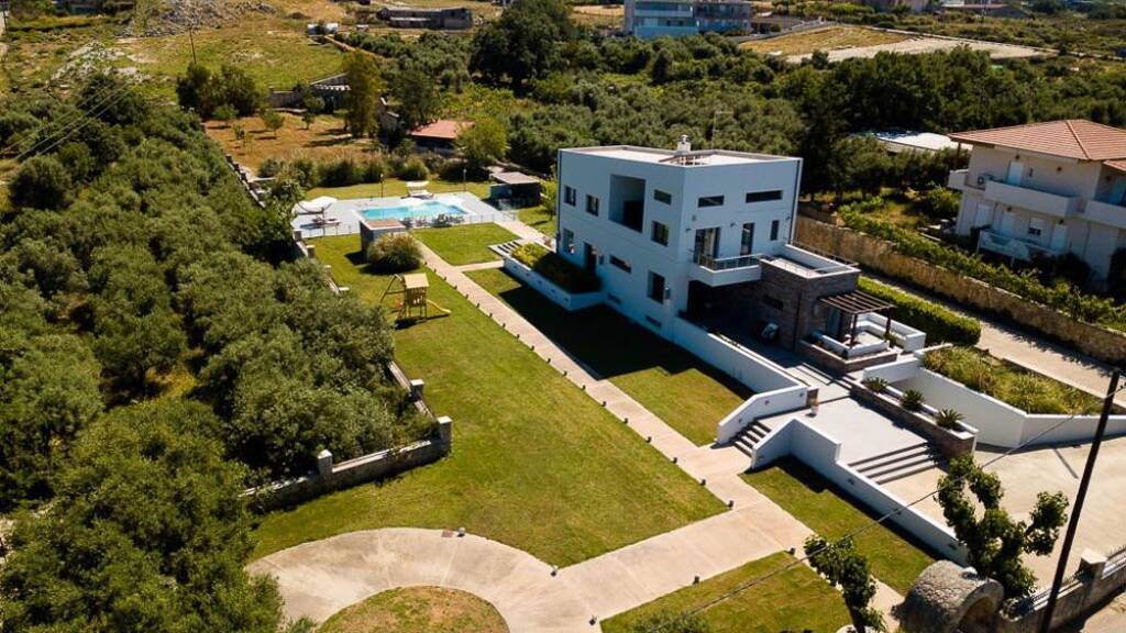 Draußen bietet das große Grundstück einen privaten Swimmingpool, mehrere Essbereiche im Freien sowie einen Grill und einen Spielplatz für die kleinen Gäste. Das Anwesen ist nur 4 km vom Stadtzentrum von Rethymnon entfernt und liegt auf einem Hügel mit Blick auf das Meer und die Stadt.