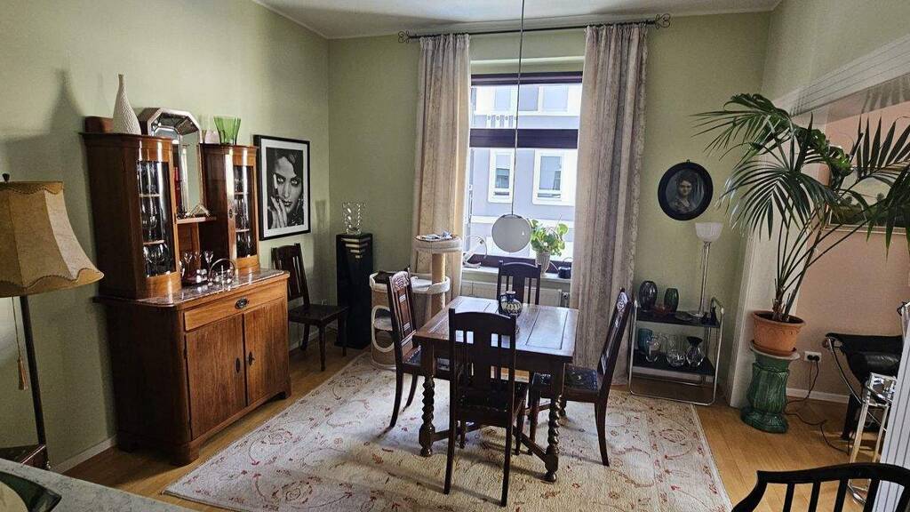 Das von außen und innen sehr ansprechende Haus ist im Jahr 1927 erbaut worden und hat durch Modernisierungen ein fiktives Baujahr von 2009. Die Wohnung selbst liegt im 1.OG und verfügt über schöne im Jahr 2011 erneuerte große Fenster. Die Gas-Etagen-Heizung ist aus 2023. Das hochwertige und ansprechende Badezimmer hat ein Fenster. Auf den ca. 87,5m² Wohnfläche lässt sich hier sehr angenehm in guter Atmosphäre wohnen. Der Preis ergibt sich aus der hochwertigen Ausstattung und der in dieser Lage so wichtigen dazugehörigen Garage, sowie der im Kaufpreis enthaltenen SieMatic Küche.