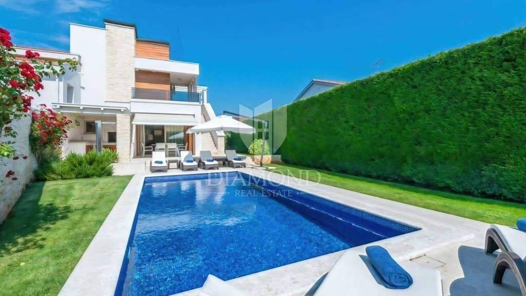 In der Nähe der Stadt Porec, nur 900 Meter von den schönen Stränden entfernt, steht eine luxuriöse Doppelhaushälfte zum Verkauf.