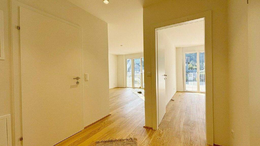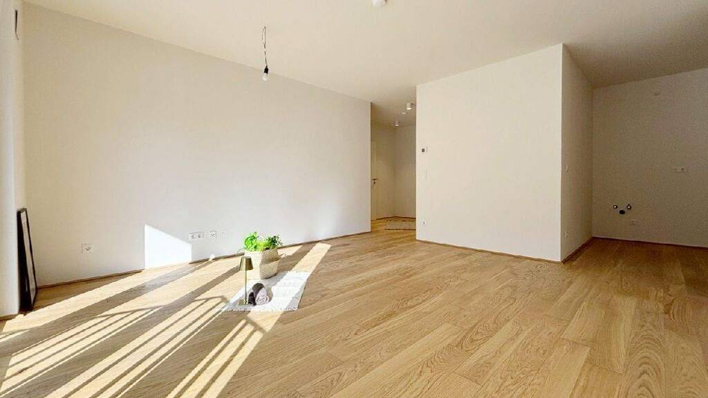 Über den offenen Vorraum gelangen Sie zum Badezimmer mit walk-in Dusche, einem separaten WC und einem Schlafzimmer sowie zur offenen Wohnküche mit Abstellraum und einem weiteren Schlafzimmer.