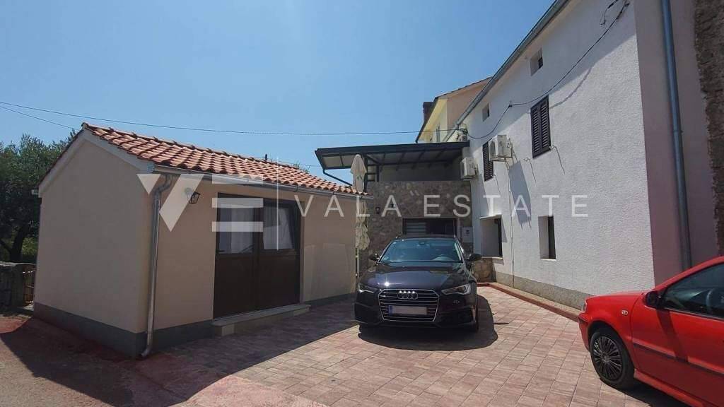 Immobilien auf der Insel Krk, rund um Malinska zum Verkauf steht ein renoviertes Steinhaus mit einer Wohnfläche von 80 m2, aufgeteilt in ein Erdgeschoss, einen ersten Stock und ein hohes Dachgeschoss. Im Erdgeschoss gibt es ein Badezimmer, eine Küche, ein Esszimmer und ein Wohnzimmer mit Zugang zur Terrasse und zum Garten. Eine Innentreppe führt in den ersten Stock, wo sich ein geräumiges Zimmer mit Zugang zu einer großen Terrasse befindet, während sich im hohen Dachgeschoss ein weiteres Schlafzimmer befindet. Außerdem gibt es im Garten ein kleineres Nebengebäude von 15 m2, das als Studio-Apartment eingerichtet ist. Das Haus wurde im Jahr 2023 renoviert, es ist komplett möbliert und ausgestattet, es gibt Fußbodenheizung im Erdgeschoss und im Nebengebäude, es ist klimatisiert, es verfügt über eine ordnungsgemäße Dokumentation und ist sofort bezugsfertig. Im angelegten Garten mit Terrasse und Sommerküche gibt es ein Nebengebäude und drei Parkplätze. Eine hervorragende Investitionsmöglichkeit für die touristische Vermietung, aber auch für den Eigenheimbau. Die Lage ist wunderschön und ruhig, 1500 m vom Meer und allen Einrichtungen entfernt.