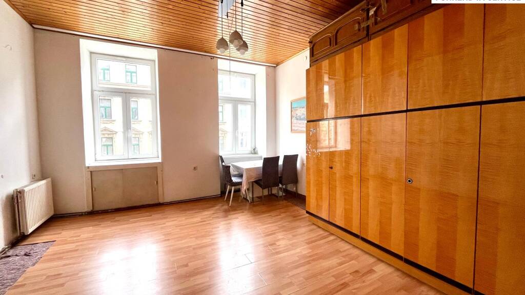 Diese gut geschnittene Wohnung im 15. Wiener Gemeindebezirk befindet sich in der Goldchlagstraße 36 und überzeugt durch eine sehr gute Infrastruktur und optimale Verkehrsanbindung - nur ein paar Gehminuten entfernt von der U3 Station (Schweglerstraße), Straßenbahnlinien 10 und 49 sowie mehrere Buslinien sind in unmittelbarer Nähe! Die ca. 41 m² Wohnung befindet sich im 1. Stock und bieten mit ihrer Raumaufteilung vielseitige Gestaltungsmöglichkeiten. Das großzügige Wohnzimmer kann man sowohl als Esszimmer als auch Wohnraum verwenden. Die Immobilie ist sanierungsbedürftig und eröffnet somit die ideale Gelegenheit, eigene Wohnvorstellungen zu verwirklichen oder ein attraktives Anlageobjekt zu schaffen. Das Wohnhaus ist mit einem Lift ausgestattet, wodurch die Wohnung bequem erreichbar ist. Um die Ecke befindet sich der Reithofferpark, der zusätzlichen Erholungswert im Grünen bietet.