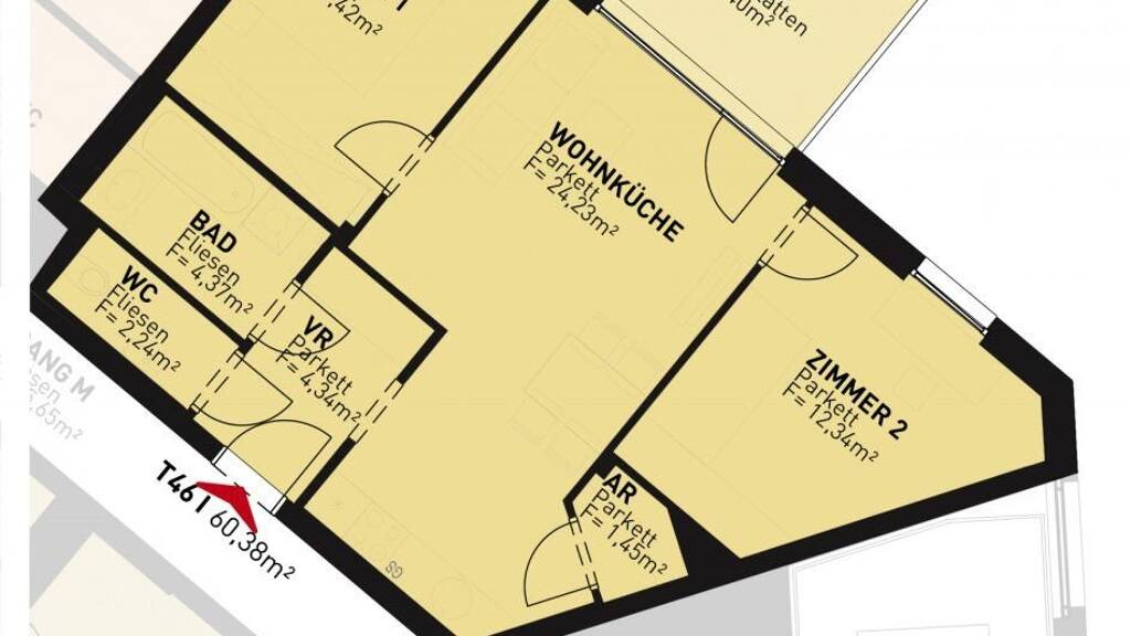 Stichworte Nutzfläche: 60,38 m², Gesamtfläche: 64,58 m², Anzahl Balkone: 1, Balkon-Terrassen-Fläche: 8,40 m², Kellerfläche: 3,27 m², Bundesland: Wien, 6 Etagen, Wohnungsnr.: 46