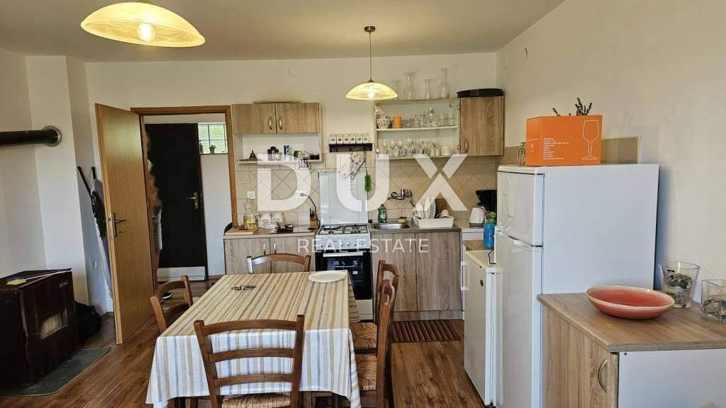 Wohnungen In der Nähe von Vrbnik, 6,5 km vom Meer entfernt, steht ein Einfamilienhaus im Grünen zum Verkauf. Auf einem großzügigen Grundstück befindet sich ein Haus mit einer Fläche von 130 m2, die sich über Erdgeschoss und Obergeschoss erstreckt. Das Haus ist als zwei Wohneinheiten/zwei Wohnungen konzipiert. Die im Erdgeschoss gelegene Wohnung besteht aus einer Eingangshalle, einer Küche mit Esszimmer und Wohnzimmer, einem Schlafzimmer und einem Badezimmer. Es hat Zugang zu einer überdachten Terrasse mit Blick auf die Umgebung und den nahegelegenen Wald. Eine Außentreppe führt in den ersten Stock, wo sich eine Zweizimmerwohnung mit Bad, Küche mit Esszimmer und Wohnzimmer befindet. Das Haus wird möbliert und kategorisiert verkauft und bietet viel Potenzial für den Tourismus. In Anbetracht der Größe des Gartens ist es möglich, einen großen Swimmingpool, eine Liegewiese, eine Sommerküche oder ein Gartenhaus zu bauen. Gelegenheit in ruhiger und ruhiger Lage. Das Eigentum ist 1/1, die Dokumentation ist in Ordnung. *** Sehr geehrte Kunden, die Agenturprovision wird gemäß den Allgemeinen Geschäftsbedingungen www.dux-nekretnine.hr/opci-uvjeti-poslovanja berechnet