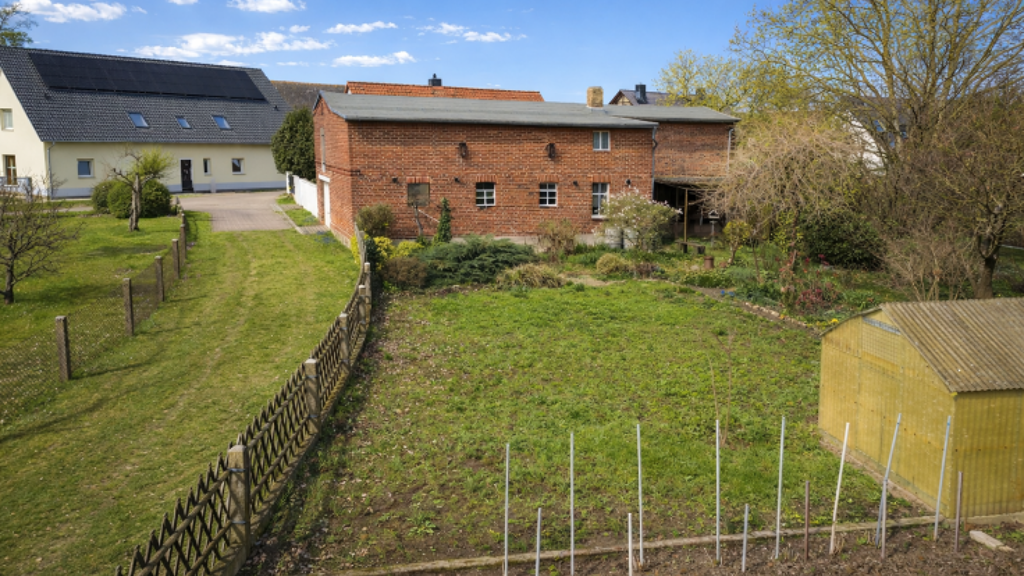 Das Grundstück umfasst großzügige Nebengebäude mit vielseitigen Nutzungsmöglichkeiten. Eine Garage sowie der befestigte Innenhof bieten Stellflächen für mehrere Fahrzeuge. Der Garten eröffnet zusätzlichen Raum zur freien Gestaltung.