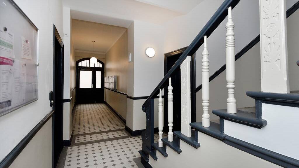 - Gepflegtes Treppenhaus mit Kokos-Treppenbelag - Moderne Klingelanlage und Metallbriefkästen - Hörerlose Türöffner mit Gegensprechfunktion in den Wohnungen - Moderne unterschiedliche Grundrisse - Vielfach offene Küchen zum Wohnraum - Zahlreiche Wohnungen mit Balkon - Aufgearbeitete historische Dielenböden - Geputzte und geschliffene Wände - Sehr schöne zeitgemäße Bäder - Teilw. abgehängte Decken in Flur, Bad & Küche mit eingelassenen Lichtspots - Waschmaschinenanschlüsse (teilweise in separaten kleinen Kammern) - Zwei Fahrradkeller im Haus - Ein Einzelkeller gehört zu jeder Wohnung - Gartenanlage im Hof