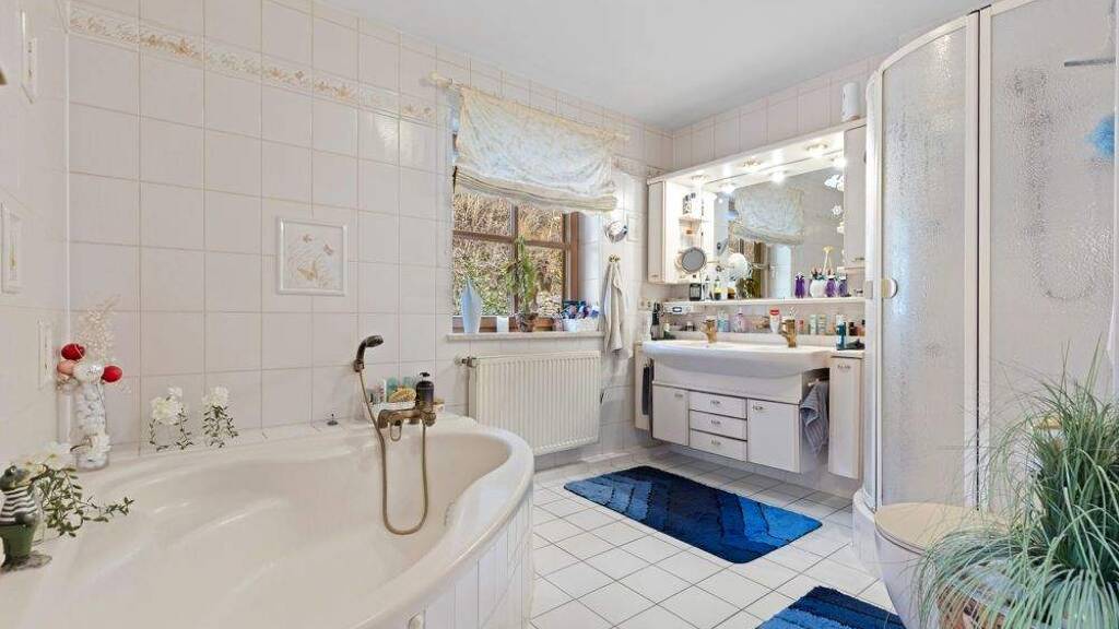 Im ersten Obergeschoss setzt sich das durchdachte Raumkonzept fort. Das Schlafzimmer verfĂĽgt ĂĽber einen in die Wand integrierten, begehbaren Kleiderschrank, der groĂźzĂĽgigen Stauraum bietet. Das helle Badezimmer ĂĽberzeugt mit einer Wellnessdusche mit seitlichen DĂĽsen, einer Eckbadewanne, einem Doppelwaschbecken sowie einer angenehmen FuĂźbodenheizung.
