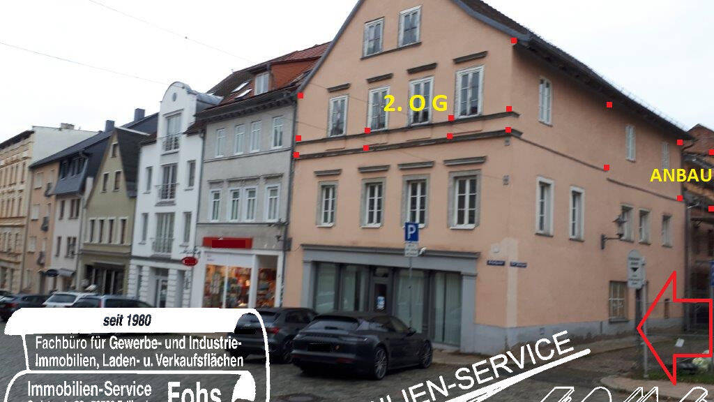 Büro-/Praxisflächen im 2. O G (6-7 Räume 120-170 m² inkl. Balkon) in 07381 Pößneck/ Thür. im Zentrum nahe Marktplatz!