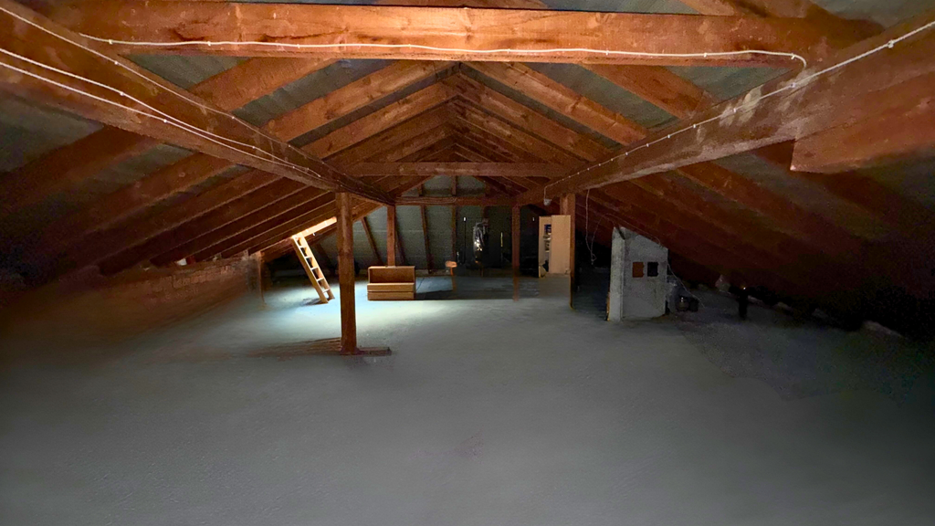 Riesiges Potenzial bietet außerdem der bisher lediglich als Abstellfläche genutzte Dachboden. Mehrere Nachbarn haben diesen ausgebaut oder aufgestockt, um die Wohnfläche zu vergrößern oder sogar zusätzliche Wohneinheiten zu errichten. Laut unverbindlichen Gesprächen mit einem Architekten sollten im Zuge eines Dachgeschossausbaus etwa 130m² zusätzliche Wohnfläche problemlos möglich sein, für diese Aussagen können wir aber natürlich keine Gewähr übernehmen. Die detaillierte Prüfung und Genehmigung der Ausbaumöglichkeiten obliegt vollständig den Kaufinteressenten.