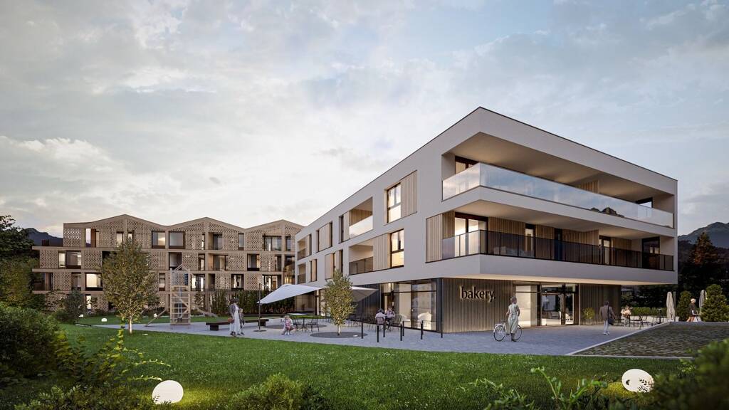 Hier einige kurze Informationen zur Immobilie: Die Wohnanlage bietet Platz für 10 großzügige Wohnungen mit ausreichend Platz für Familien. Im Erdgeschoss sind 2 Geschäftslokale situiert die durch die Laubengangsituation optimal Richtung Dorfplatz geöffnet sind. Der Garten ist parkähnlich angelegt und beinhaltet einen modernen Kinderspielplatz. In der Grundausstattung inbegriffen sind hochwertige Parkettböden, großflächige Fliesen sowie eine Sanitär- und Elektroausstattung von namhaften Herstellern. Das Gebäude umfasst ein Untergeschoss sowie drei oberirdische Geschosse. Im Untergeschoss befindet sich eine Tiefgarage mit Technik- und Lagerräumen sowie Allgemeinflächen für Sportgeräte, usw. Die 2 im Erdgeschoss situierten Geschäftslokale bieten sich aufgrund des zentralen Standorts ideal für eine Bäckerei oder ein Kaffeehaus mit kleinen Snacks an. Ein Sportgeschäft könnte das Angebot im Ortszentrum abrunden. In den oberen Etagen (1. und 2. OG) liegen die geräumigen Wohnungen mit 2-3 Zimmern. Das Heiz- und Kühlsystem des Gebäudes basiert auf dem effizienten Einsatz moderner Wärmepumpentechnologie welche optional über eine Photovoltaik Anlage auf dem Flachdach unterstütz werden kann. Die Wohnung 07 (2.OG) hat eine Größe von ca. 69 Quadratmeter und einen Balkon mit ca. 20 Quadratmeter. Kaufpreis Wohnung: 460.000€ Optional Kaufpreis Autoabstellplatz Garage: 25.000€ Optional Kaufpreis Autoabstellplatz Außen: 15.000€