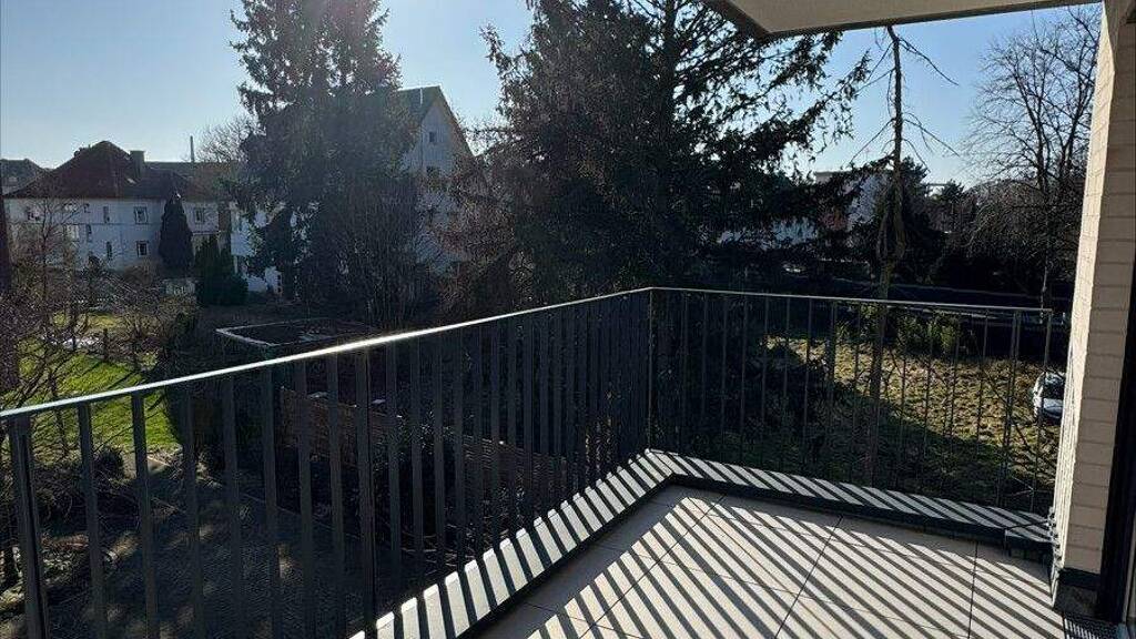 Das Badezimmer ist mit einem Fenster ausgestattet und verfügt über eine großzügige, moderne Dusche. Ein praktischer Abstellraum innerhalb der Wohnung bietet zusätzlichen Stauraum und ist zudem mit einem Waschmaschinenanschluss ausgestattet, sodass Waschmaschine und Haushaltsutensilien bequem untergebracht werden können. Der Mittelpunkt der Wohnung ist der großzügige und lichtdurchflutete Wohnbereich. Große Fensterflächen sorgen für viel Tageslicht und schaffen eine angenehme Wohnatmosphäre. Von hier aus gelangen Sie direkt auf den Balkon, der zusätzlichen Raum zum Entspannen im Freien bietet und sich ideal für eine kleine Sitzgruppe eignet.