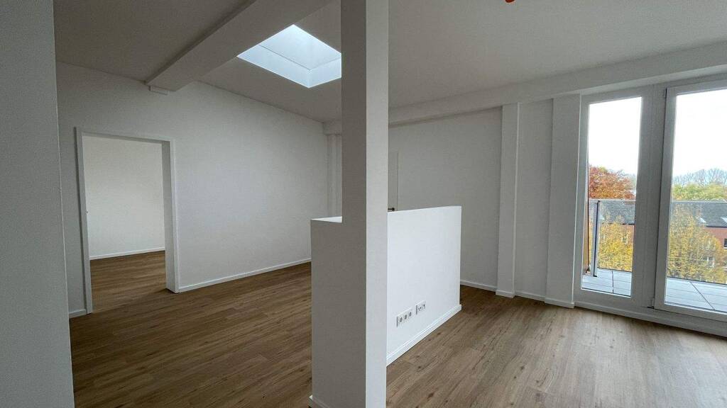 Die Wohnung verfügt über einen Balkon, ein Badezimmer mit Duschbad und Glastrennwand sowie eine offene Wohnküche mit Backofen, Cerankochfeld und Dunstabzugshaube. Ein Geschirrspüler wird noch eingebaut. Die Balkonfenster sind mit elektrischen Außenrollos ausgestattet, die Dachfenster mit Verdunkelungsrollos. Ein Raum für die Waschmaschine ist in der Wohnung vorhanden. Ein separater Abstellraum - ebenfalls auf der Etage - bietet zusätzlichen Stauraum. Der Zugang zur obersten Etage erfolgt bequem über einen Aufzug. Beheizt wird die Wohnung über eine Fußbodenheizung. In den Betriebskosten sind bereits Vorauszahlungen für den Wasserverbrauch enthalten, über den in der jährlichen Nebenkostenabrechnung abgerechnet wird. Aufgrund der baulichen Gegebenheiten wird der Wohnungsstrom vom Vermieter gestellt. Die Vorauszahlungen hierfür belaufen sich bei einer Person auf EUR 40,00, bei zwei Personen auf EUR 70,00 und kommen noch zu den Nebenkosten hinzu. Abgerechnet wird über den tatsächlichen Stromverbrauch in der jährlichen Nebenkostenabrechnung. Die Wohnung wird nach Absprache verfügbar sein. Haustiere sind nicht gestattet.