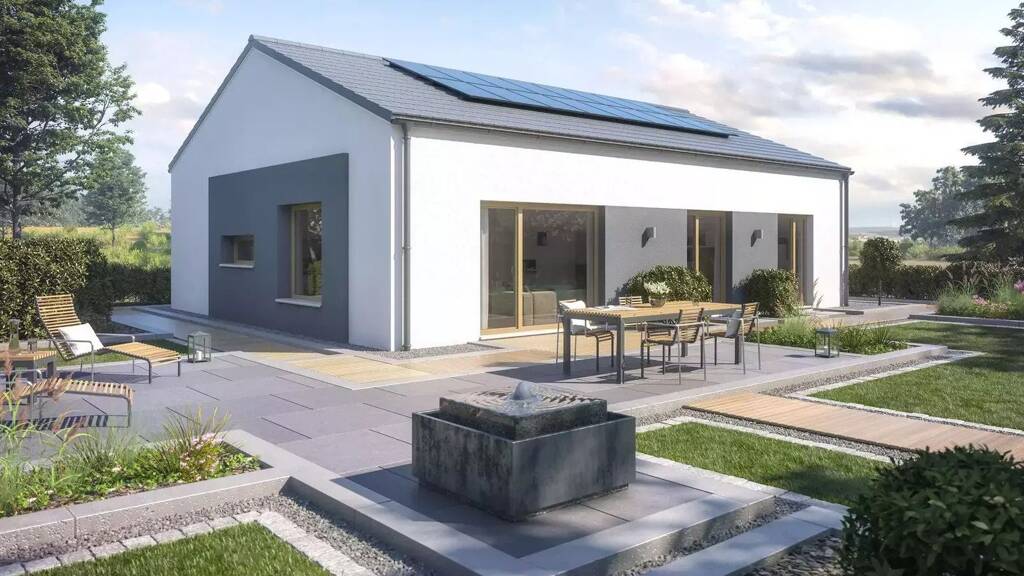 Der Bungalow AMBIENCE 110 von Bien-Zenker ist ein wahres Raumwunder für Familien. Auf rund 112 m² Wohnfläche bietet er nicht nur Platz, sondern auch ein durchdachtes Konzept, das alle Bedürfnisse berücksichtigt. Das Herzstück des Hauses bildet der großzügige Wohn-, Ess- und Kochbereich, der durch seine lichtdurchfluteten Fenster eine einladende Atmosphäre schafft. Hier können Sie gemeinsame Abende mit der Familie verbringen und kulinarische Köstlichkeiten zaubern.