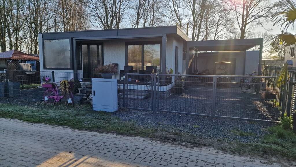 Wir verkaufen unser in unserem eigenen Unternehmen gebautes Chalet mit sehr hochwertigem Material, Wänden, 15 cm Boden und Dach 20 cm, Schiebetüren und Dreh-Kipp-Verglasung mit sonnenbeständiger Dreifachverglasung nach europäischen Standards Fußbodenheizung im gesamten Chalet, Luxusküche mit Geschirrspüler, Kühl-Gefrierkombination, Mikrowelle, Backofen geräumige Dusche, 2 geräumige Schlafzimmer, separate Toilette mit Waschbecken, separater Waschmaschinen- und Trocknerraum Klima, 2x16 Ampere, Chalet mit Blick auf das Wasser, auf dem Campingplatz gibt es 3 Badeseen, mögliche Übernahme der Einrichtung mit Doppel-Auping-Bett, Möbel, evtl. Golfwagen mit Nummernschild, auf öffentlichen Straßen nutzbar, großes Vordach mit zu öffnende Lamellen, große Sichtschutzwände, geräumiger Schuppen, für weitere Informationen können Sie uns gerne für weitere Fotos kontaktieren