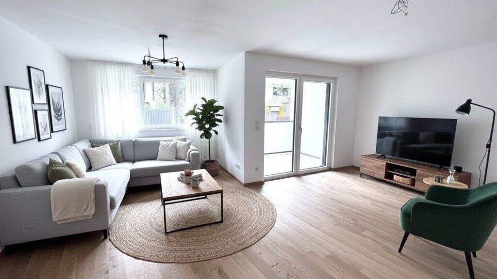 Bei den möblierten Fotos handelt es sich um virtuelles Homestaging, die Wohnung wird unmöbliert verkauft, Küche/Badezimmer bleiben.