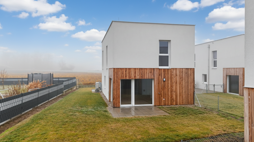 Großzügige 3-fach-verglaste Fensterflächen und eine Raumhöhe von ca. 2,60 m schaffen in allen Räumen ein helles, freies Wohngefühl. Der südlich bzw. südwestlich ausgerichtete Garten von ca. 160,91 m² garantiert viele Sonnenstunden und lädt zum Verweilen ein. Dank der leicht versetzten Bauweise bleibt eure Privatsphäre im Garten gewahrt. Die Ziegelmassivbauweise mit effizienter Wärmedämmfassade sorgt zu jeder Jahreszeit für ein angenehmes Raumklima. Eine Wärmepumpe mit Fußbodenheizung ermöglicht wohltuende, energieeffiziente Wärme an kalten Tagen. Das Haus wird schlüsselfertig inklusive Küche samt Blaupunkt-Geräten übergeben