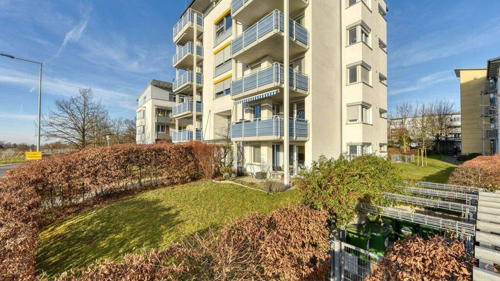 Diese bequeme und vermietete 3 Zimmer-Wohnung mit Terrasse und Grünfläche befindet sich im Erdgeschoss eines 12-Familienhauses.