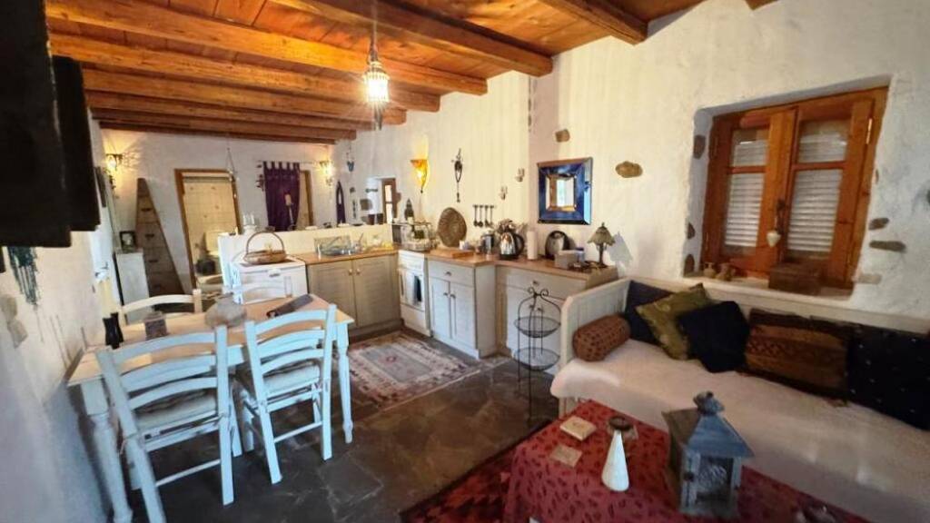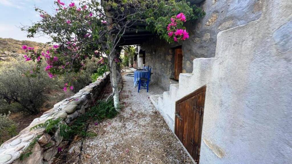 Steinhaus (65 m²) mit einem schönen Garten (440 m²). Es verfügt über einen offenen Wohn-/Essbereich, eine Küche und einen Arbeitsbereich, ein Schlafzimmer mit Einbauschränken und ein Badezimmer. Abstellräume sind ebenfalls vorhanden. Ein zweites Schlafzimmer ist möglich. Das Haus liegt nur 1 km vom Strand und den Geschäften von Makry Gialos entfernt.