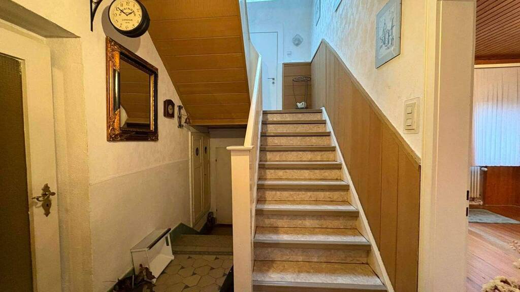 Das Objekt ist ein Freistehendes Einfamilienhaus mit Garten und Garage. 1929 erbaut, wurde es in den Jahren 1963 und 1973 durch einen Anbau erweitert. In den 80-iger Jahren wurde die Fassade gedämmt, das Dach wurde 1995 erneuert und gedämmt. Die Heizung/Gasheizung wurde 1999 erneuert. Warmwasser wird über Durchlauferhitzer erzeugt. Die Aufteilung sieht wie folgt aus: Erdgeschoss/Hochparterre, Hauseingang, 3 Zimmer, Küche, G-WC. Tageslichtbad mit Badewanne und Dusche. Dachgeschoss: 5 Zimmer, 2 Zimmer davon sind Durchgangszimmer, Küche. Kellergeschoss: das Haus ist unterkellert. Die Garage ist über den Garten zu befahren. Heizungsraum/Gaszentralheizung.