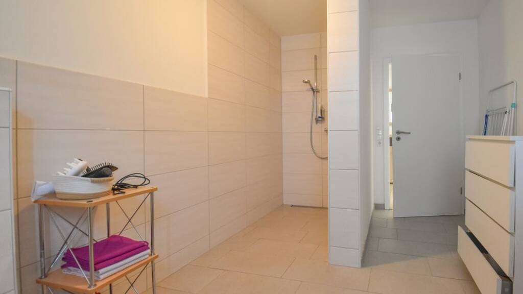Wohnhaus 1: Erdgeschoss ca. 90 m² Wohnfläche Offene Wohnküche mit Zugang zur Terrasse Drei Schlafzimmer Bad mit ebenerdiger Dusche Hauswirtschaftsraum und Flur Überdachte Terrasse Außen-Abstellraum