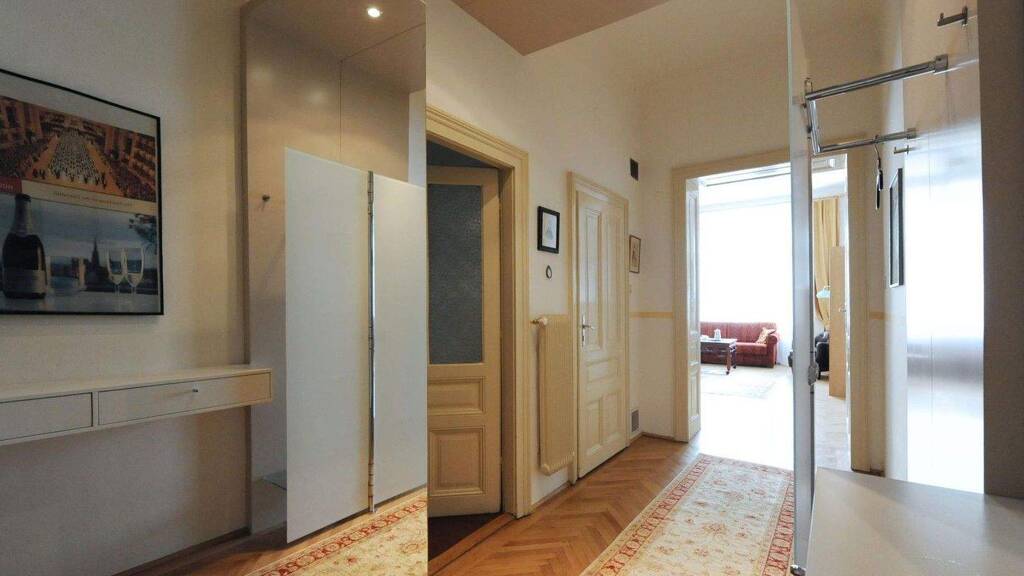 Die vollmöblierte Wohnung (78 m²) liegt südseitig im 1. Stock eines edlen Jugendstilhauses. Vom sonnigen Balkon blickt man auf den gegenüberliegenden Park und den Wiener Wald. Die moderne Küche ist komplett eingerichtet.