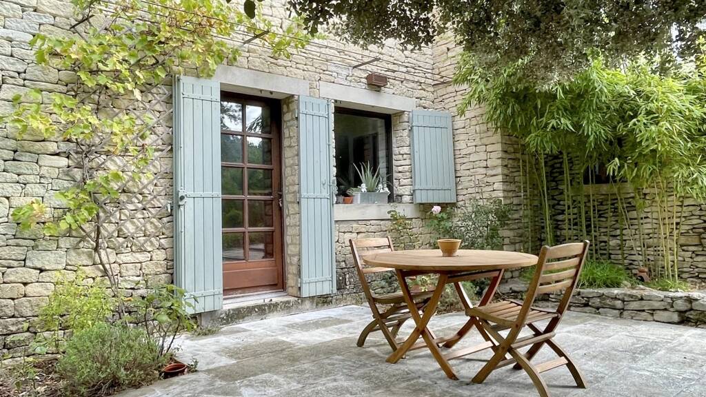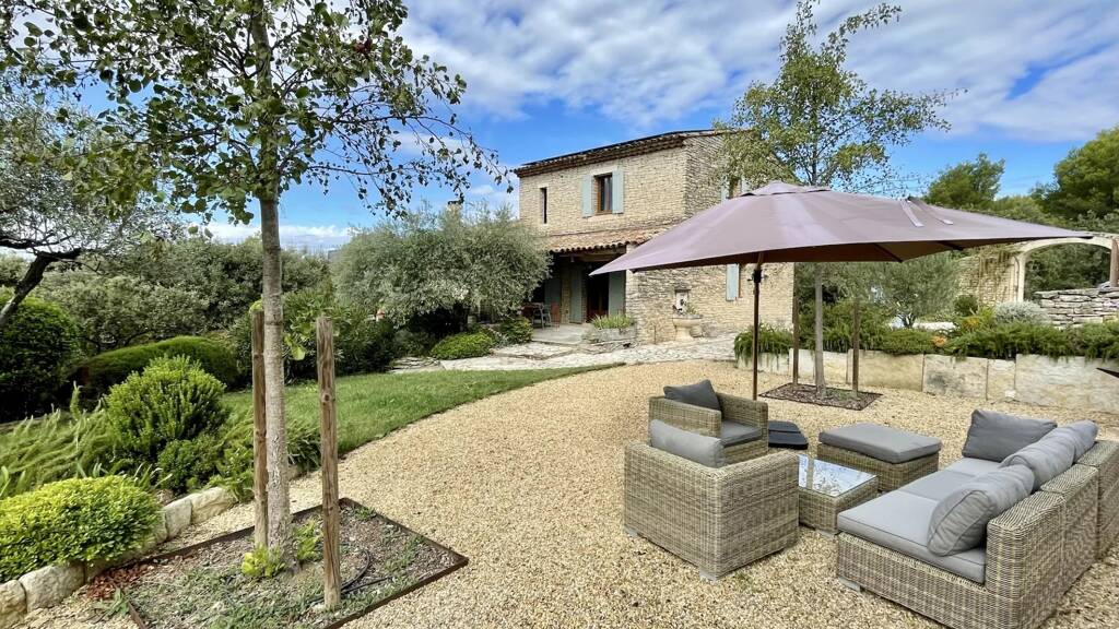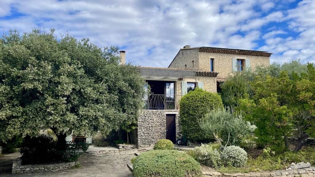In the countryside of the village of Goult, enjoying a beautiful view of the Luberon and the Alpilles, charming stone house with a built surface area of approximately 250 m2 plus workshop and garage.