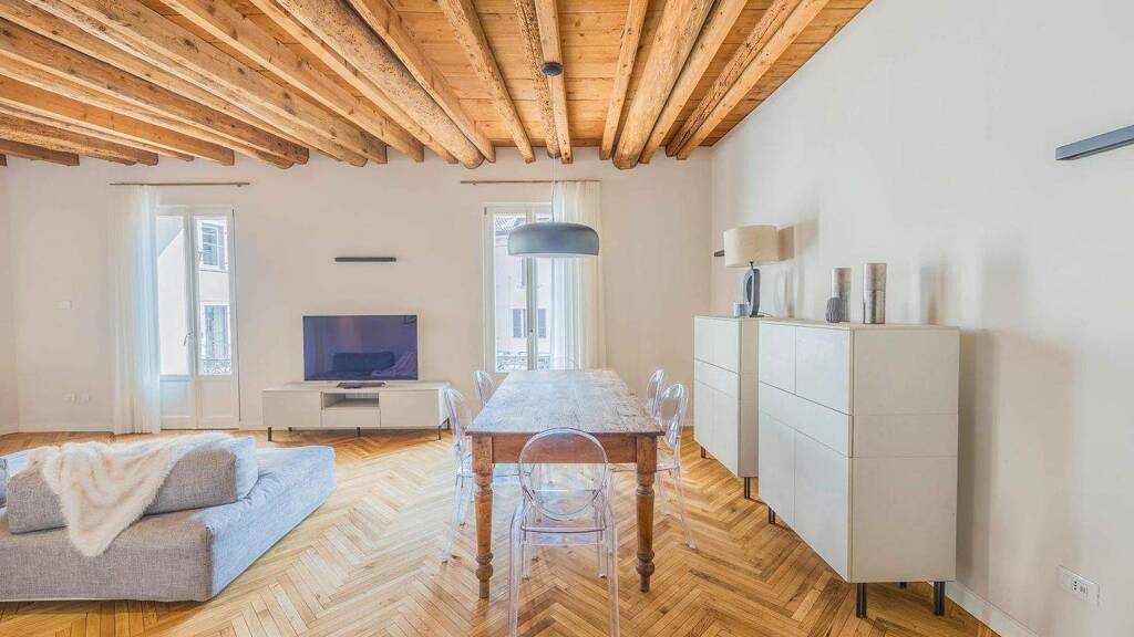 Sanierte 4-Zimmer Wohnung Diese elegante 4-Zimmer Wohnung liegt in einem vollständig sanierten, herrschaftlichen Altbau aus dem Jahr 1890, mitten im historischen Zentrum von Desenzano. Die Lage ist kaum zu übertreffen: In unmittelbarer Nähe zum See, zum Hafen und zu den charmanten Gassen der Altstadt genießt man hier ein exklusives und zugleich authentisches Lebensumfeld.