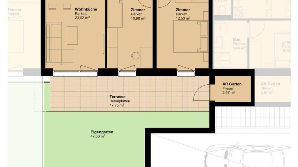 Stichworte Nutzfläche: 62,68 m², Gesamtfläche: 74,11 m², Balkon-Terrassen-Fläche: 17,75 m², Gartenfläche: 47,66 m², Kellerfläche: 2,07 m², Bundesland: Niederösterreich, 3 Etagen, Wohnungsnr.: 3-06