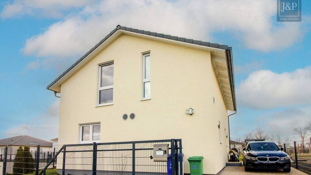 + Luft-Luft-Wärmepumpe inklusive Kühlsystem + Photovoltaikanlage mit 22 Modulen und eigenem Energiespeicher + Weichwasseranlage + Alle Fenster sind 3-fach verglast und mit elektr. Rollläden versehen + 30 m² große Terrasse + Außenbeleuchtung + Einbauküche + Zwei Stellplätze + Brunnen + Hauswirtschaftsraum + Gartenhaus + Familienfreundliche Nachbarschaft + Grundstücksgröße 560qm2 + Bezugsfrei + Einfamilienhaus in neuer Neubausiedlung