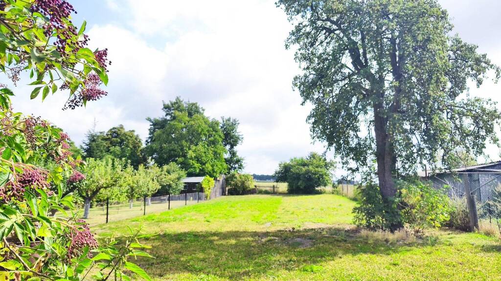 Das Grundstück untergliedert sich in Hofbereich, Nebengelasse, Scheune und Garten, es ist voll eingezäunt. Auf dem Hof befindet sich die Garage und ein Holzschuppen. Die Nebengelasse bieten viel Potential: Abstellflächen, Werkstatt und Waschküche gibt es hier. Die Scheune ist ein echtes Highlight: sie ist sehr groß und hat zwei Keller. Schlussendlich folgt der Garten mit Birnbaum.
