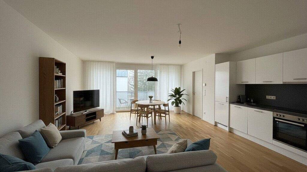 Bei den möblierten Fotos handelt es sich um virtuelles Homestaging, das Objekt wird unmöbliert vermietet, Küche/Badezimmer bleiben im Objekt.