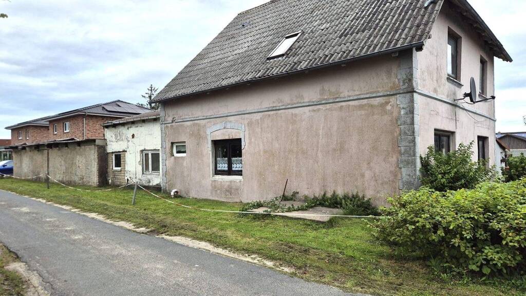 Zum Verkauf steht ein ca.185m² sanierungsbedu?rftiges Einfamilienhaus, das derzeit in zwei getrennte Wohnungen aufgeteilt ist. Das Gebäude befindet sich auf einem ca. 865 m² großen, vollständig eingezäunten Grundstu?ck mit zusätzlicher großer Garage und Nebengebäude/Schuppen.