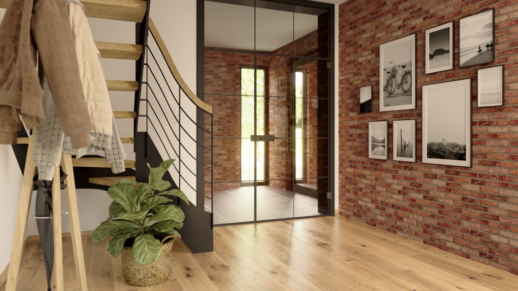 Ein echter Blickfang für dein Flair 152 RE ist der Anbau mit handgefertigten Revierklinkern als Fassadenverkleidung. Dieser ist nicht nur optisch ansprechend, sondern auch eine Bereicherung für den Wohnraum. Er schafft ein Extra an Platz und ein Mehr an Lebensqualität. Und hast du schon mal etwas von dem Industrie-Stil gehört? Beim Flair 152 RE setzt zum Beispiel die markante Lofttür, die das Haus mit dem Anbau verbindet, ein einzigartiges Highlight in der Einrichtung, das sich ganz einfach in dein modernes Interior einfügt.