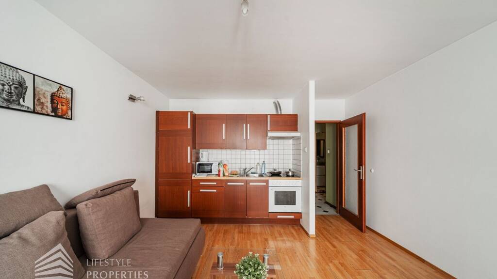 Die Wohnung liegt im 2. Liftstock eines Neubaus aus dem Jahr 1979 und erstreckt sich über ca. 42 m², bestehend aus einem Wohn-/Schlafraum mit Küchenzeile, einem Vorzimmer, einem Abstellraum, einem Badezimmer sowie einer separaten Toilette. Der Hauptraum verfügt über schönen Laminatboden, in den restlichen Bereichen sind Fliesen verlegt. Die Immobilie wird mittels Gaszentralheizung beheizt, die Kosten für Heizung und Warmwasser betragen aktuell EUR 77,60 zzgl. USt. pro Monat. Die Wohnung wird mit allen auf den Fotos ersichtlichen Möbeln verkauft.