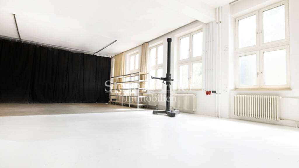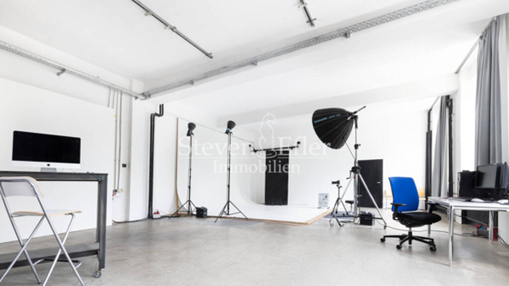 Der zur Disposition stehende Mietbereich ist Teil eines großen Fotostudios mit mehreren Studioräumen. Die Einheit befindet sich im Erdgeschoss und ist über ein großzügiges Tageslichttreppenhaus zugänglich.