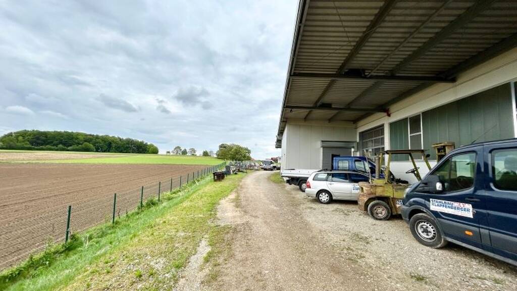 Die ca. 1.100 m² große Stahlbauhalle wurde 1998 errichtet, verfügt über eine Gasbetonfassade, ein Sandwichdach mit großem Firstlichtband und 3 Portalkräne, die die gesamte Fläche überstreichen. Zusätzlich bietet ein Vordach ca. 140 m² überdachte Außenlagerfläche. Ein großes Tor sorgt für eine reibungslose Produktlogistik. Die Immobilie ist gepflegt und befindet sich in einem sehr guten Zustand. Die Anmietung einer Teilfläche ist möglich.