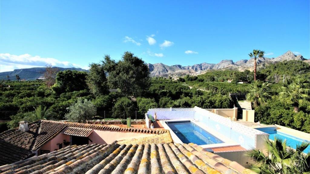 Hiermit bieten wir Ihnen eine der wenigen, noch originalgetreu renovierten Fincas (ca.160 Jahre) an. Sie liegt in einer eigentümlichen Landschaft zwischen Bergen und dem Mittelmeer. Das, mit Bedacht auf die alte Gebäudesubstanz und den Charakter der Finca zu bewahren, wurden teilweise die Original Fenster, Türen und Tore aufwendig restauriert oder durch gleichalte aus dem Antikhandel ersetzt. Auch das Dach wurde teilweise erneuert und unter Verwendung der alten Ziegel neu aufgebaut. Die 40 cm dicken Außenmauern, bieten in den heißen Sommermonaten eine willkommene Abkühlung im Haus inneren. Viele Originalteile der damaligen Zeit sind noch vorhanden wie z.B. Bodenfliesen, über 3 Meter hohe Holztüren, Küchenvitrinen etc. Der ursprüngliche Patio (zur damaligen Zeit wurde dieser für die Tierhaltung genutzt) ist zu einem sehr einladenden - mit arabischen Fliesen ausgestattet - Innenhof ausgebaut worden. In der massiven Außenwand des Patios ist ein alter funktionsfähiger Backofen (original) eingemauert. Die Finca ist inmitten von Orangenplantagen gelegen und verfügt daher selbst über Orangenbäume und Mandel-, Aprikosen-,Oliven- und Feigenbäume. Gerade zur Blütezeit legt sich ein herrlicher Duft von frischen Orangen (Azahar-Blüte) etc. über die gesamte Gegend. Der Parkähnliche Garten ist für eine ganzjährige Blüte angelegt und mit vielen Pflanzen des Mittelmeerraums bepflanzt. Der Garten verfügt über eine komplette Bewässerungsanlage. Die Finca verfügt über 5 Schlafzimmer, 3 Bader, großes Wohnzimmer mit offenem Kamin, offene Küche verbunden mit dem großen Esszimmer und direktem Zugang zu Patio. Die Finca bietet außerdem verschiedene Bereiche als Ruhezonen an. Im Eingangsbereich hat man die Möglichkeit sich auf der großen Terrasse mit Blick auf den Garten zu entspannen. Auf der großen Terrasse im Schwimmbadbereich kann man wunderbar den Sonnenuntergang genießen und im Hauptschlafzimmer bietet die kleine Terrasse einen freien rundum Blick auf die Bergkette des Mondúber und die umliegenden Plantagen.