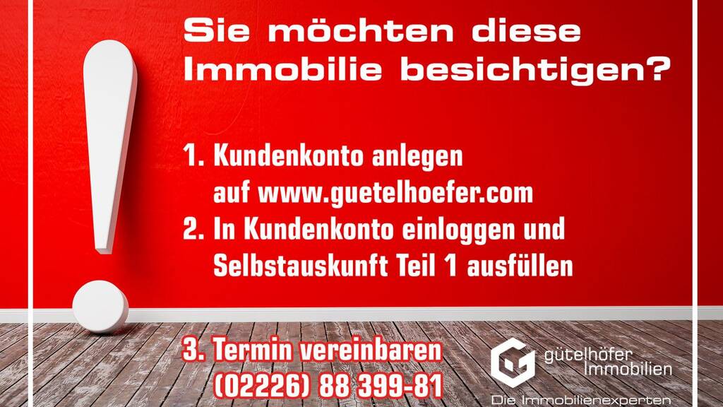 Wichtiger Hinweis: Registrieren Sie sich auf unserer Website unter https://guetelhoefer.com/registrierung und laden Sie sich das gewünschte Exposé inklusive Objektadresse herunter. Nach der Registrierung erhalten Sie eine E-Mail mit der Bitte Ihr Kundenkonto zu bestätigen (ohne Bestätigung kein Zugang!). Nach der erfolgten Bestätigung Ihres Kundenkontos können Sie die gewünschten Exposés inklusive Objektadresse direkt als PDF Datei herunterladen und haben Zugriff auf alle virtuellen 360 Grad Besichtigungstouren.