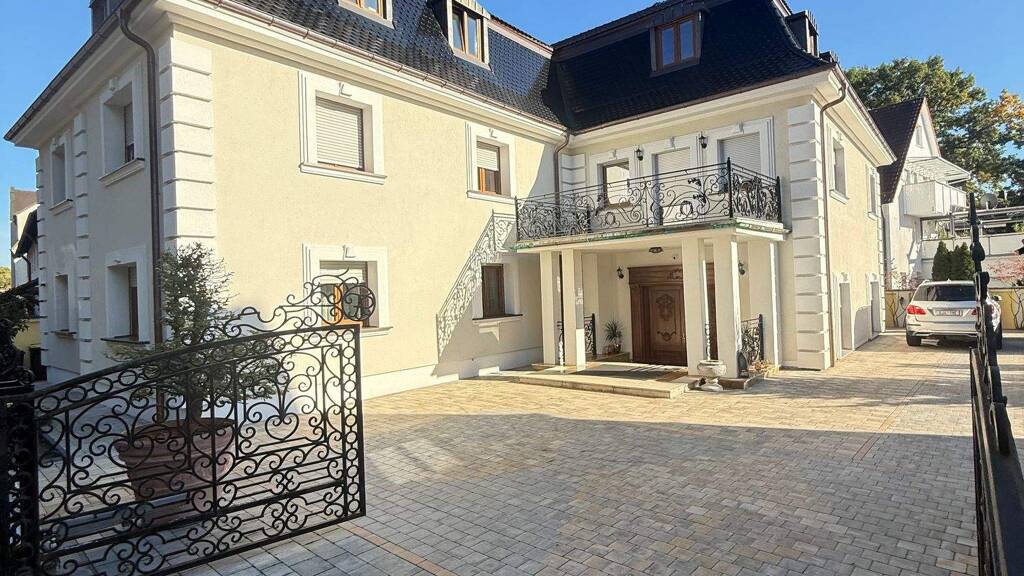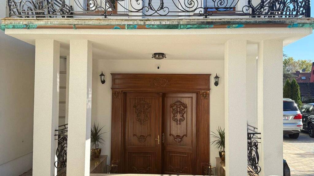Der Hauseingang befindet sich im Neubau und führt in eine repräsentative Eingangshalle mit offenem Wohnkonzept, einem großen Wohnzimmer sowie Esszimmer. Die Treppe im Neubau führt ins Obergeschoss zu zwei großen Schlafzimmern jeweils mit Bad en Suite. Ein Schlafzimmer verfügt über einen großen Balkon. Der Neubau ist nicht unterkellert. Am Übergang zum sanierten Altbau geht es in den neugestalteten Keller. Hier wurde eine neue Gaszentralheizung eingebaut und alle Leitungen, Kabel und Rohre wurden erneuert. Das Treppenhaus inkl. Treppengeländer im Altbau wurden aufwändig saniert, das Treppengeländer ist aus massivem Messing, die Stuckarbeiten an Wand und Decke wurden mit viel Liebe zum Detail saniert und mit echtem Blattgold verziert. Im Erdgeschoss befindet sich ein großes Schlafzimmer mit Bad en Suite und eine Küche mit Einbauküche. Im Obergeschoss befinden sich zwei Schlafzimmer eines ebenfalls mit Bad en Suite sowie ein Büro. Das Dachgeschoss wurde neu gebaut mit einem großzügigen Walmdach mit vielen Dachflächenfenstern. Das Dach ist noch nicht ausgebaut und bietet dadurch die Möglichkeit für den neuen Eigentümer sich selbst zu verwirklichen. Hinter dem Haus befindet sich ein kleiner Anbau mit 50 qm welcher als Außenküche ebenfalls mit Einbauküche genutzt wird. Zusammenfassend ist zu erwähnen das nur hochwertige Materialien, wie Echtholzparkett, Marmorfliesen, Granitboden, Fußbodenheizung im Neubau, Blattgold und handgeschnitze Smeraldi Masivholztüren inkl. Zarken verbaut wurden.