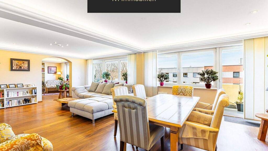 Hochwertige Materialien wie massives Nußbaum-Parkett, Granitfliesen, Natursteinfensterbänke sowie Stuckleisten mit indirekter Beleuchtung unterstreichen den exklusiven Charakter dieser besonderen Immobilie, die Großzügigkeit, Flexibilität und Wertstabilität auf einzigartige Weise vereint.