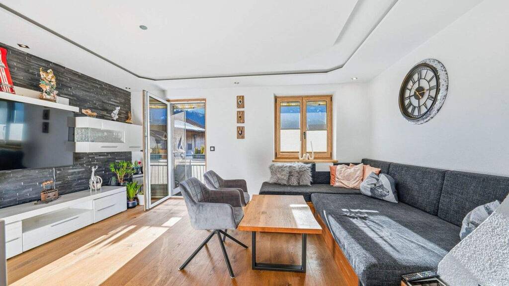 Besonders hervorzuheben ist der südwestlich ausgerichtete Balkon mit Markise, auf dem du sonnige Nachmittage und den freien Blick auf die umliegende Bergwelt genießen kannst. Ein großes Kellerabteil sowie eine eigene Garagenbox runden dieses attraktive Angebot perfekt ab.