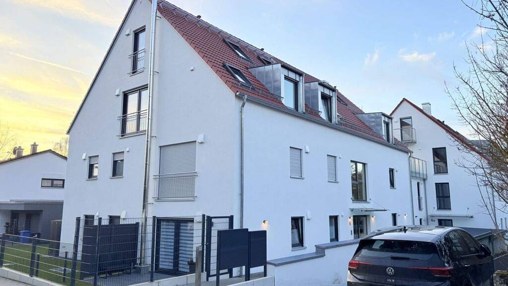 - schickes Wohnensemble mit insgesamt 14 Wohneinheiten, verteilt auf 2 Häuser - 2. Obergeschoss im Vorderhaus (nur 8 Wohneinheiten) - Aufzug von der Komforttiefgarage bis ins Dachgeschoss (2. OG) - ca. 99 m² Wohnfläche, Baujahr 2022/2023 - perfekte Grundrissgestaltung, ansprechende Architektur - großzügiger und lichtdurchfluteter Wohnbereich mit offener Küche - Schreiner-Einbauküche inkl. elektrischer Einbaugeräte (separater Mietvertrag: 60 Euro brutto/Monat) - Badezimmer mit großer, bodengleicher Dusche, Badewanne und zwei Waschbecken - Hauswirtschaftsraum mit Waschmaschinen- und Trockneranschlüssen und zusätzlichem WC - Schlafzimmer und ein Kinderzimmer/Arbeitszimmer im Studio - moderne Vinylböden in Eiche-Optik (Bad gefliest) - tolle, nicht einsehbare Dachloggia mit idealer Südwestausrichtung - Tiefgaragenstellplatz (60 Euro/Monat) - Kellerabteil + gemeinschaftlicher Fahrradkeller