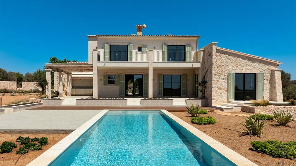 In der Nähe von Santanyí befindet sich diese wunderschöne Neubaufinca in ruhiger Lage mit weitem Panoramablick.