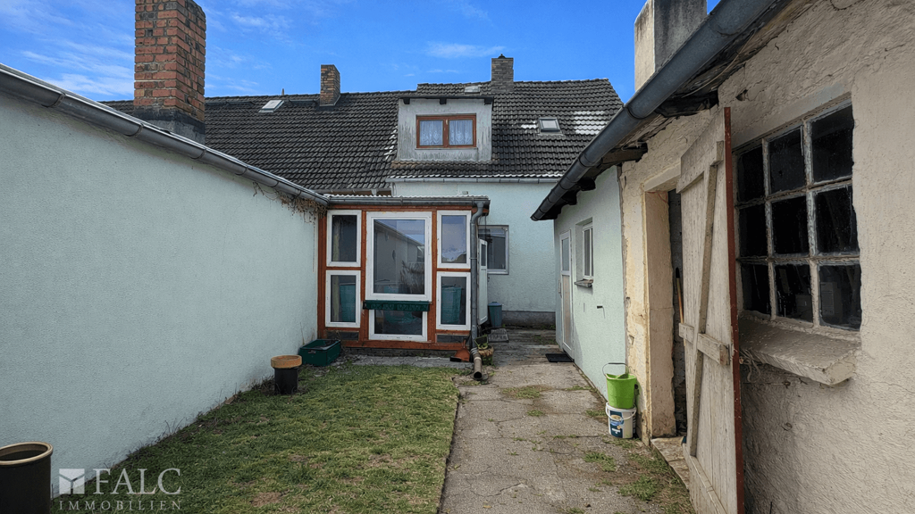 Außenbereich: - mehrere Schuppen auf dem Grundstück - Wintergarten mit Zugang zum Garten - Garten mit Gestaltungspotenzial - Sanierungsbedürftiger Zustand