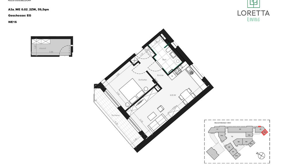 Willkommen bei Loretta Living - einem modernen Wohnensemble in zentraler Lage von Düsseldorf, das urbanes Lebensgefühl mit naturnahem Wohnen verbindet. Das Gebäude­ensemble bestehend aus einem fünf- und einem vier­­geschossigen Bau­körper verkörpert modernes, komfortables Wohnen und bietet eine vielfältige Auswahl an durchdachten Grundrissen - ideal für Singles, Paare und Familien. Jede Wohnung überzeugt durch helle, offene Räume, Fußbodenheizung, eine moderne Einbauküche sowie Fenster mit Dreifachverglasung und erhöhtem Schallschutz. Besondere Highlights sind die privaten Außenbereiche: Alle Einheiten verfügen über einen Balkon, eine Loggia oder eine Terrasse mit Blick auf begrünte Innenhöfe - ideal zum Entspannen. Dank Aufzügen, stufenlosem Zugang und durchdachtem Design ist Loretta Living für jede Lebensphase geeignet.