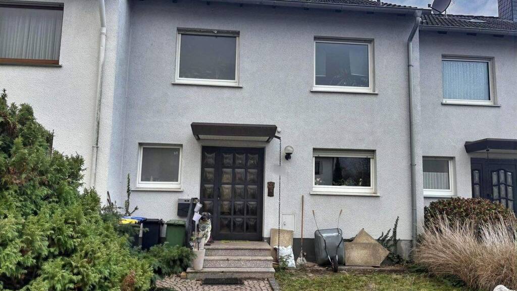Dieses Reihenmittelhaus aus ca. 1969 bietet auf ca. 104 m² Wohnfläche und einem Grundstück von ca. 235 m² viel Platz für Familien. Das zweigeschossige Haus in Massivbauweise verfügt über ein Satteldach mit Potenzial für eine individuelle Nutzung oder zusätzlichen Wohnraum. Es ist vollunterkellert mit Zugang über eine Außenkellertreppe, und ist mit einer Ölheizung ausgestattet.