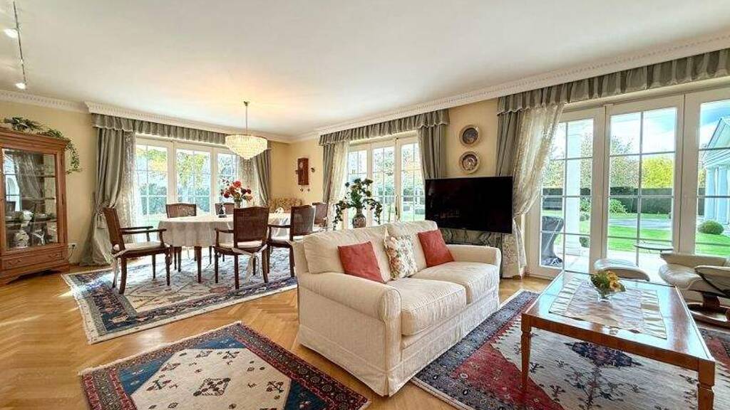 Die im Jahr 2000 umfassend neu errichtete Villa (nach kompletter Erneuerung eines Altbestands) präsentiert sich in klassischer Massivbauweise mit Walmdach und Vollkeller.Rund 200 m² Wohnfläche auf zwei Ebenen vereinen zeitlose Architektur mit modernstem Wohnkomfort.