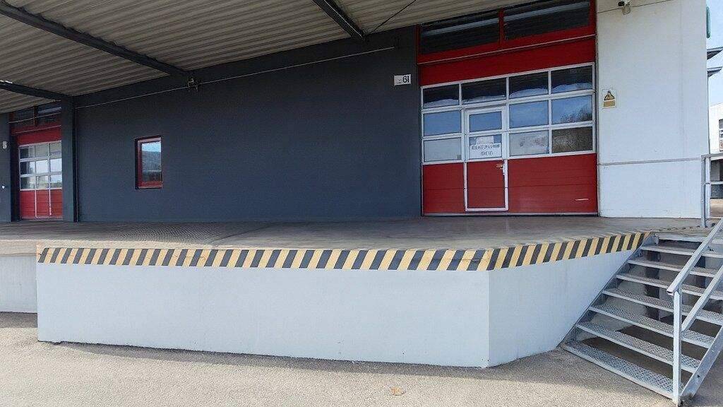Die Halle verfĂĽgt ĂĽber eine eigene vorgelagerte, ĂĽberdachte Rampe mit LadebrĂĽcke.