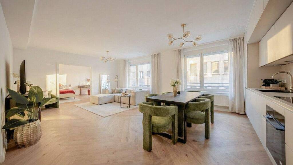 Die Wohnung wurde mit besonderem Augenmerk auf Qualität und Stil saniert. Hochwertige Fischgrätparketten verleihen den Räumen eine zeitlose Eleganz, während ausgewählte Materialien und präzise ausgeführte Details ein stimmiges, anspruchsvolles Gesamtbild schaffen. Die voll ausgestattete Küche sowie die beiden modernen Bäder setzen auf Funktionalität und Ästhetik gleichermaßen - ideal für alle, die Wert auf Komfort und eine durchdachte Ausstattung legen.