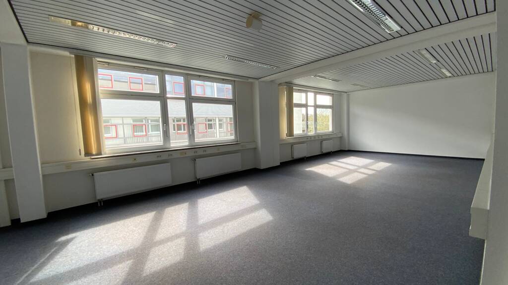 Die Aufteilung ist überwiegend "open-space", kann jedoch bei Bedarf auch unterteilt werden. Dank umlaufender Fensterflächen sind die Räume schön hell. Eine Beschattung ist über Jalousien und Rollläden auf der Süd- und Westseite vorhanden.